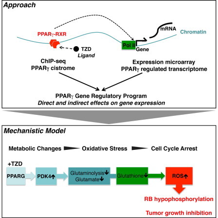 PPARγ 및 TZD의 성장 억제를 위해 여러 메커니즘이 제안되었지만( Koeffler, 2003 , Peters et al., 2012 ), 정상 조직에서 포도당 및 지방산 대사의 주요 조절자로서 PPARγ의 확립된 역할에도 불구하고 암의 특정 변화 대사는 이전에 PPARγ의 항종양 작용에 대한 핵심 메커니즘으로 제안되지 않았습니다.