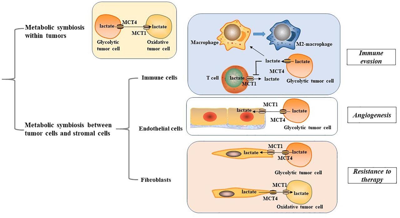 그림 2 암에서 젖산 교환을 기반으로 한 대사 공생 및 공생.