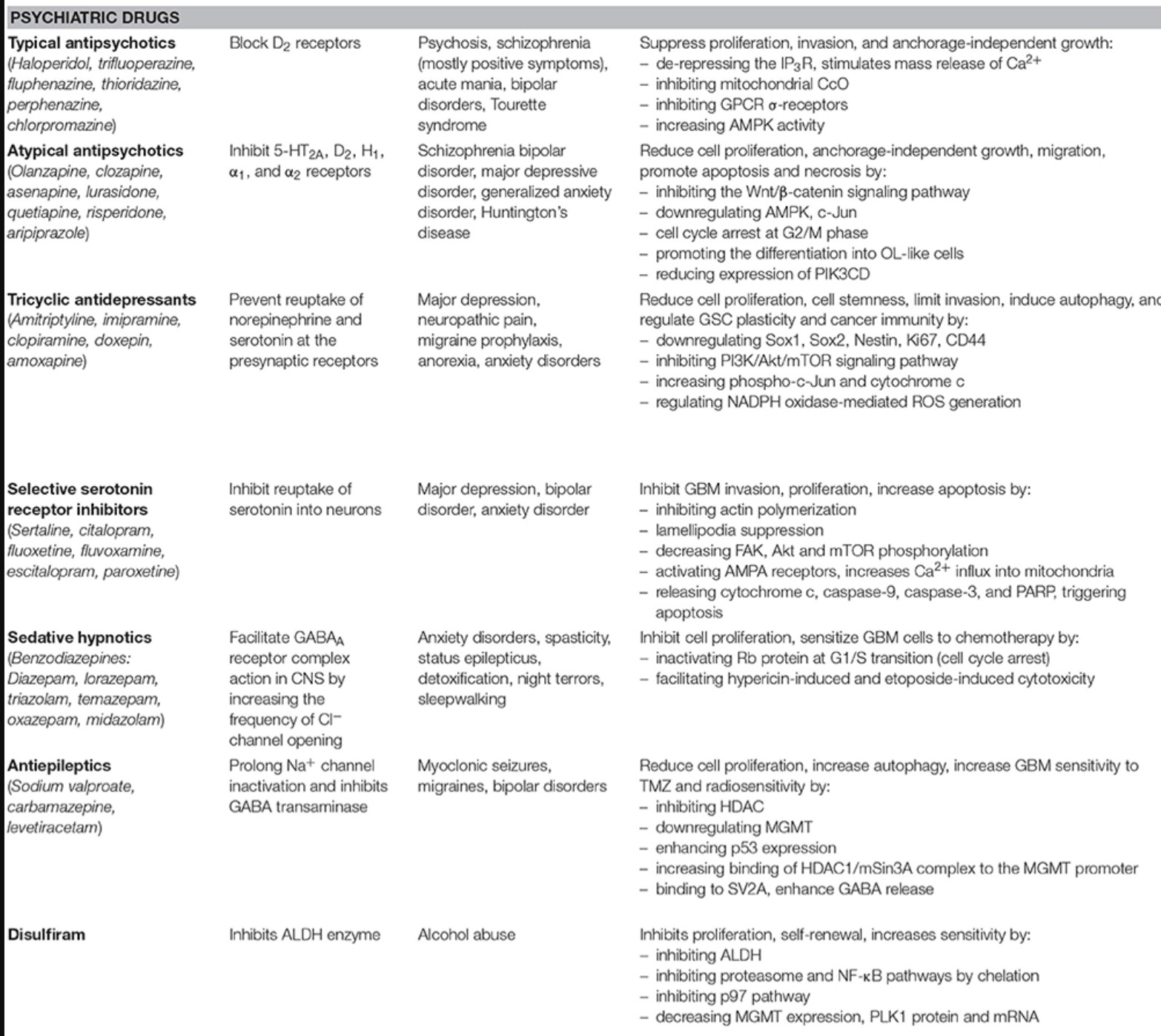 | Antipsychotics | Thioridazine | AMPK, MAP1/LC3-II, WNT | |
