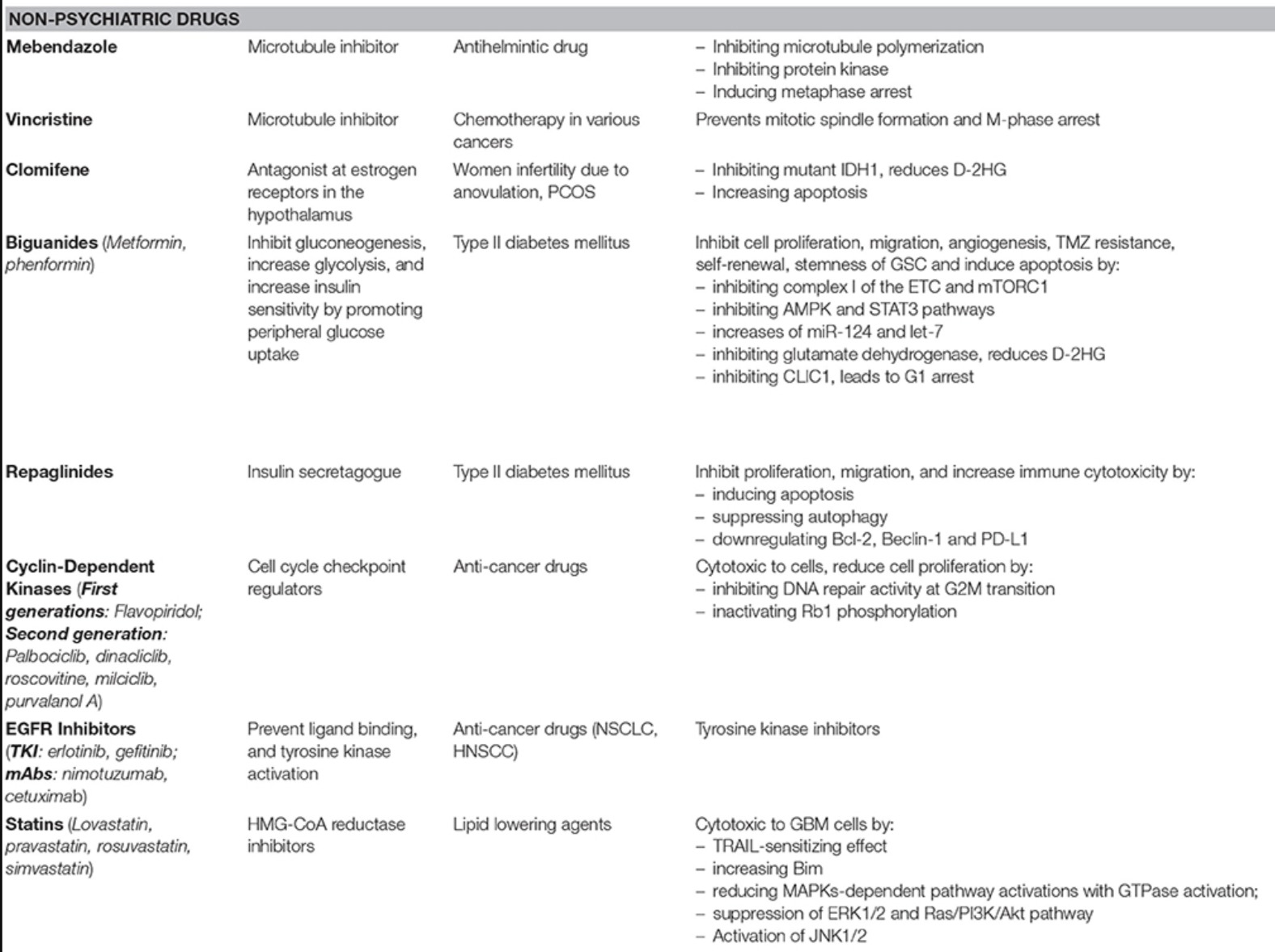 Table 1. Drug class, specific drug, and drug targets of repurposed agents currently undergoing preclinical investigation.