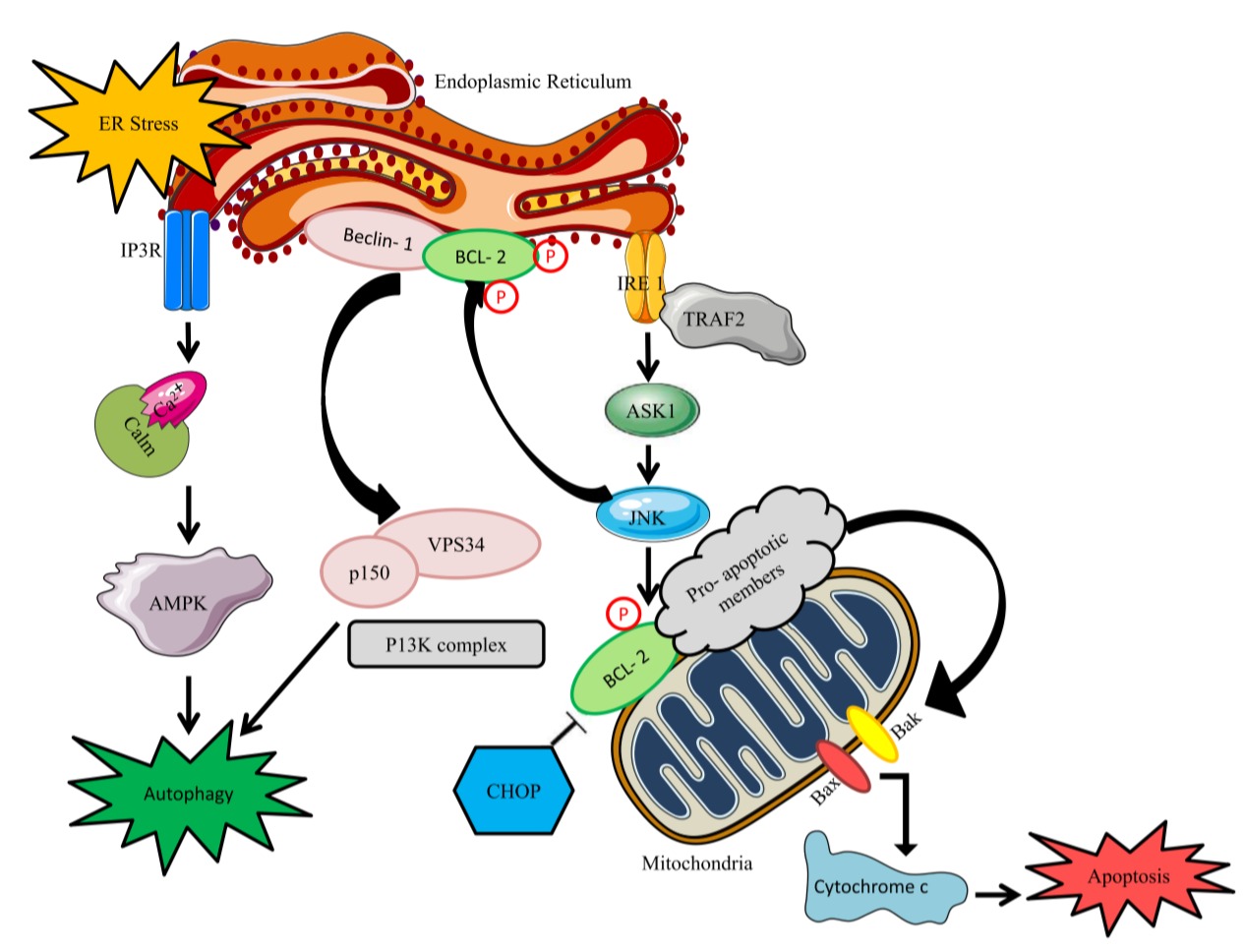 또한 RS는 단백질 산화 및 ROS 생성과 관련된 과정인 잘못 접힌 단백질의 생성을 통해 ER 스트레스를 활성화할 수 있습니다.