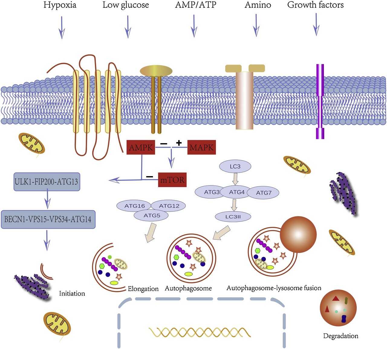 HIF-1α 독립적인 자가포식은 포도당 및 아미노산 결핍과 관련이 있으며 AMPK 유도 및 mTOR 억제에 의해 활성화됩니다[ 94 ].