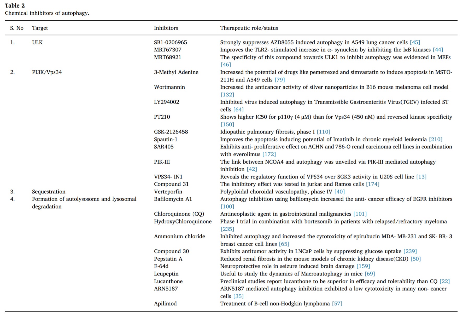 Kinases regulating autophagyClinically relevant compoundsEffect on the kinaseEffect of the drug on autophagy flowReferences