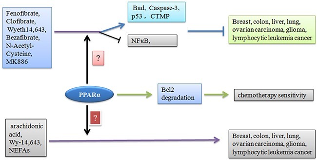 증가하는 문헌에 따르면 PPARα 또는 PPARγ는 여러 경로에 의해 종양 진행을 억제할 수 있으며, 이는 암 치료의 잠재적인 치료 표적이 될 수 있는 반면 일부 작용제는 PPARα/γ 독립적인 방식으로 종양 진행을 억제합니다(그림 (그림1,1, 수치 그림3).3).