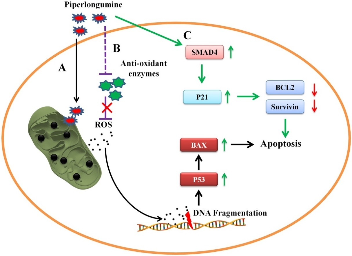 Piperlongumine(PL)은 ROS 수치를 높여 장암 세포를 죽입니다.