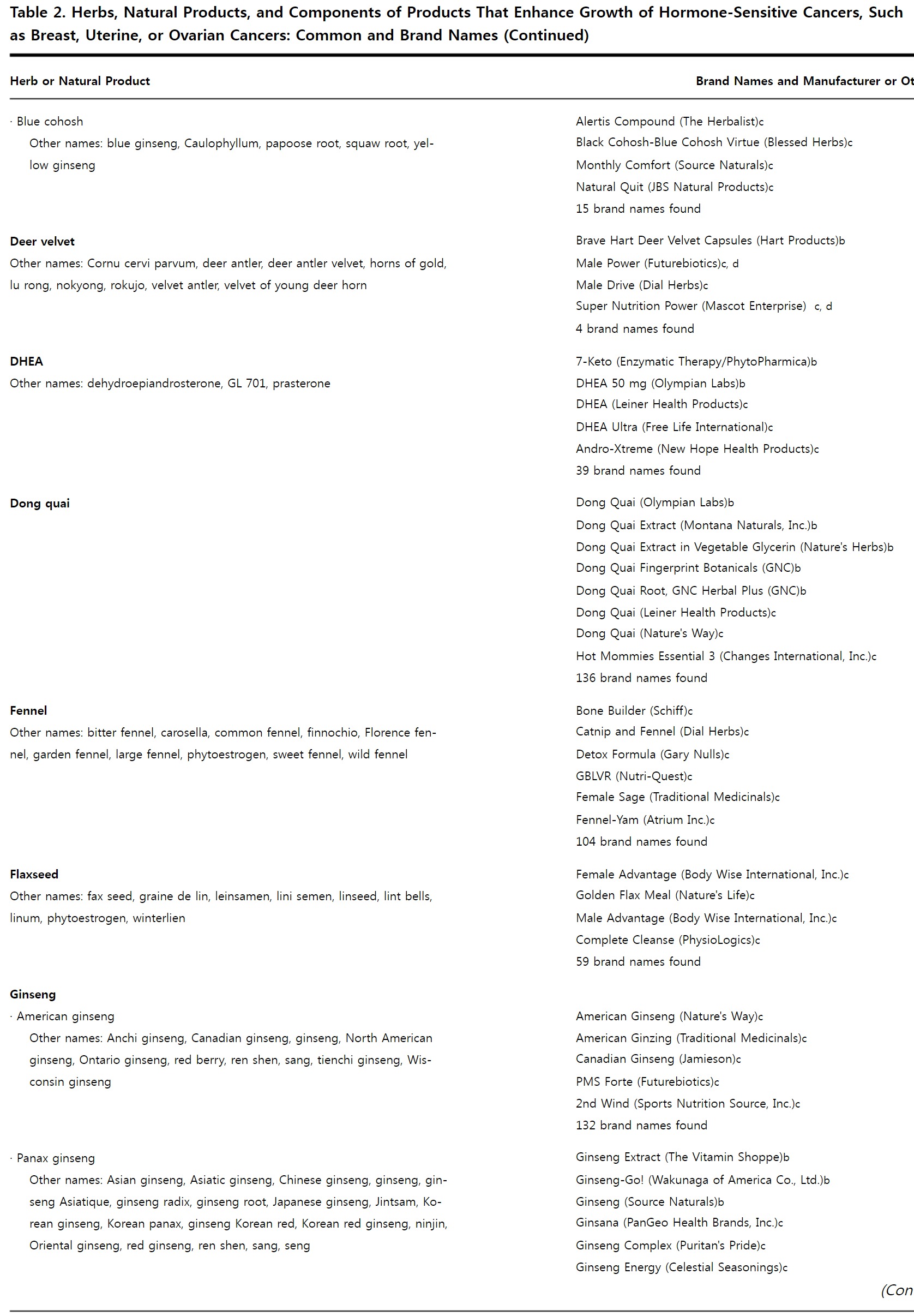 독성 또는 부정적인 부작용이 있는 허브 및 천연 제품에 대해서는 표 3을 참조하십시오.