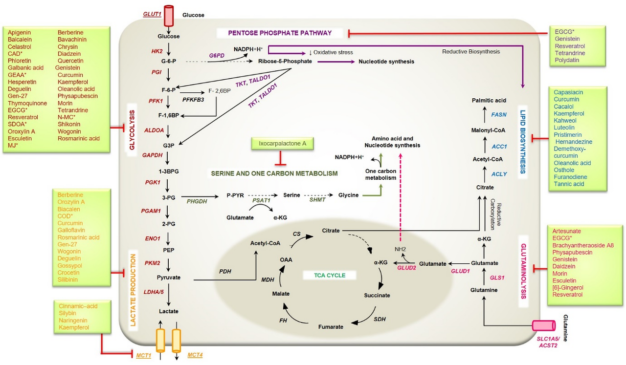 이러한 관점에서 우리는 종양 성장에 미치는 영향과 함께 식물 화합물이 표적으로 하는 중추 대사의 주요 경로를 아래에서 논의합니다.
