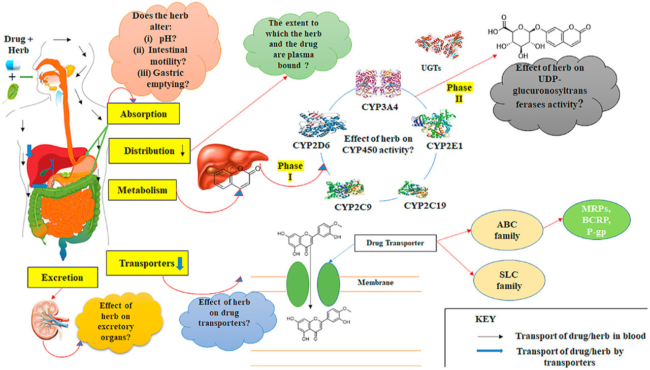 그림. Generalised mechanistic insight into herb-drug interactions.