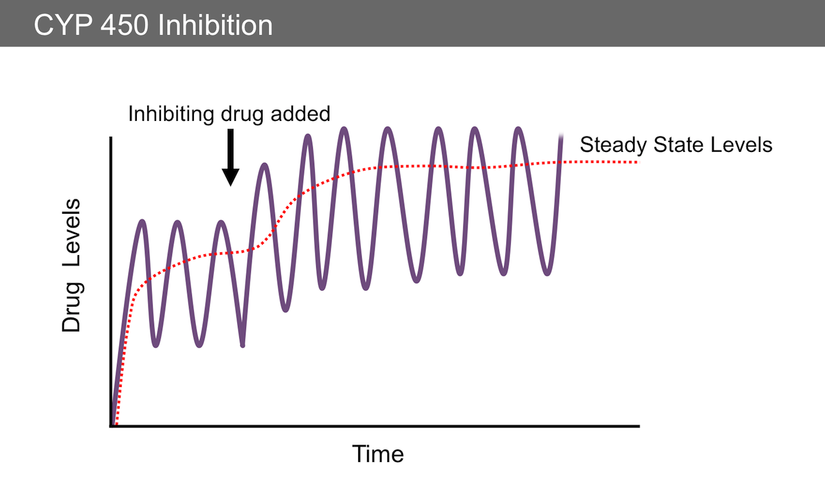 효소를 억제하는 약물(억제제)은 동일한 효소에 의존하는 다른 약물의 대사를 감소시켜 약물의 약물 수준을 증가시키고 잠재적인 약물 독성을 유발합니다( 그림 2 ).