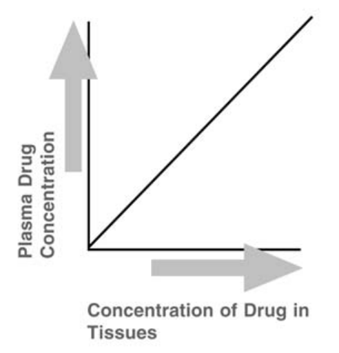 구획 내에서는 결합한 약물과 그렇지 않은 약물 사이의 균형을 이룰 때 까지 반응이 일어난다.