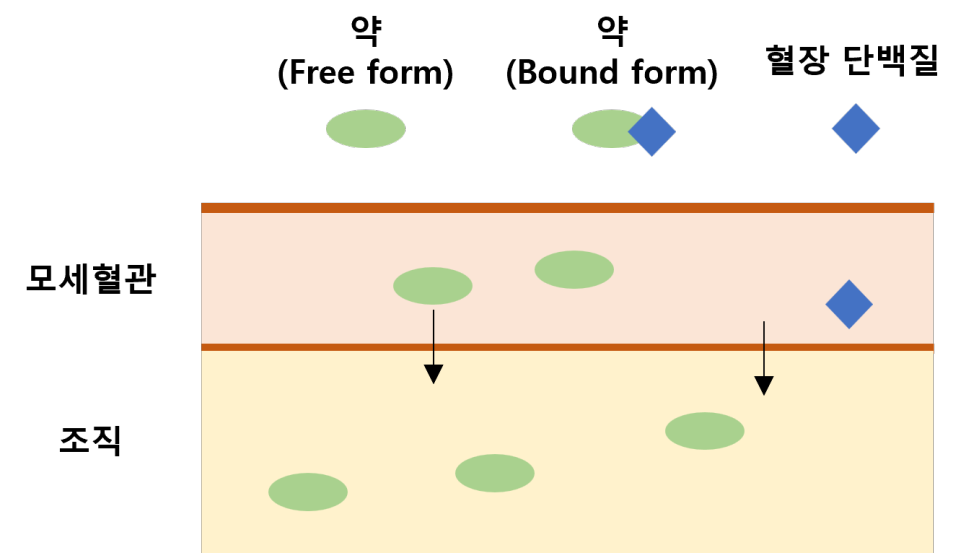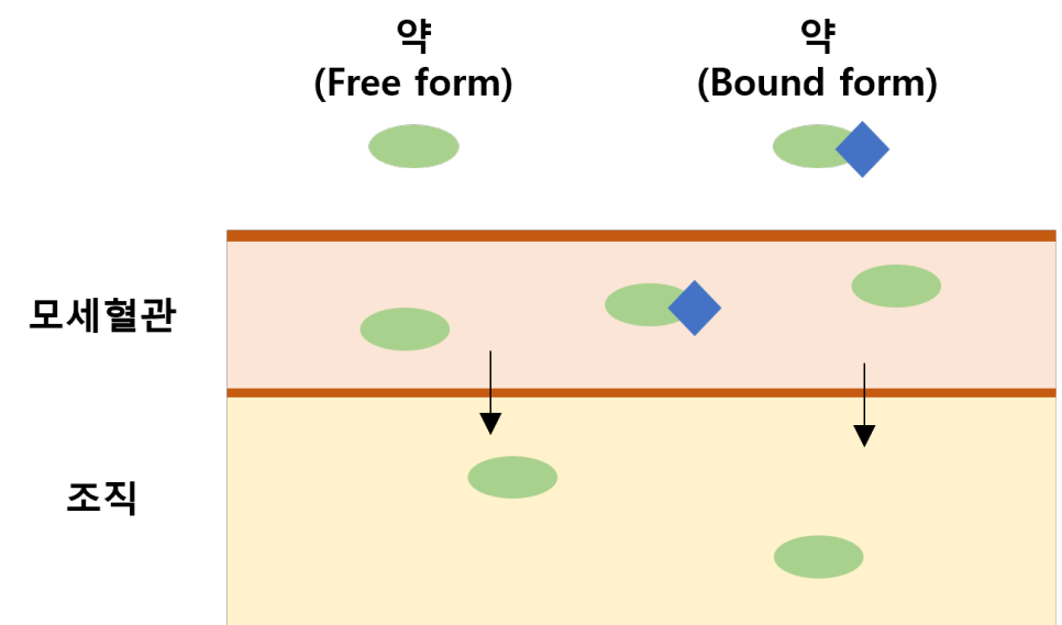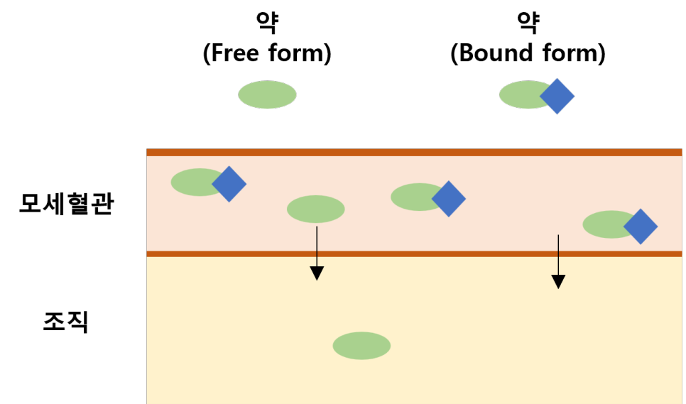 혈액에 약물을 투여하면, Binding molcule과 결합한 약물은 혈액에 남는다.