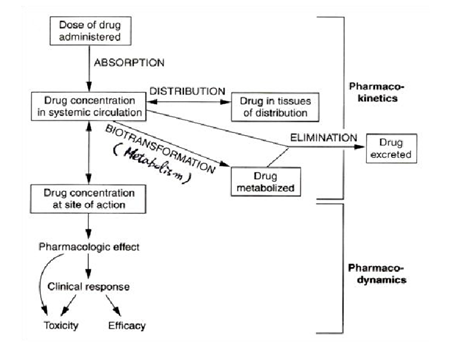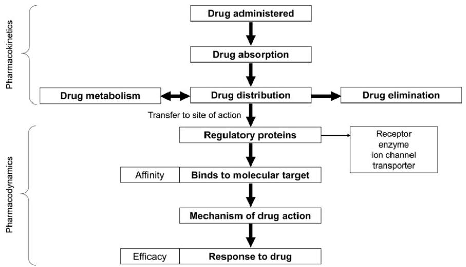 약동학; Pharmacokinetics "신체가 약물에 미치는 영향"을 다룬다. 반대로 "약물이 신체에...