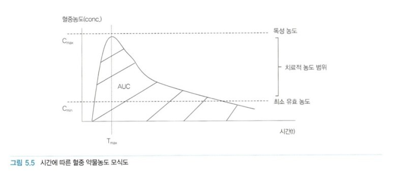 최대 농도를 Cmax, 그 때의 시간을 Tmax 라고 한다.