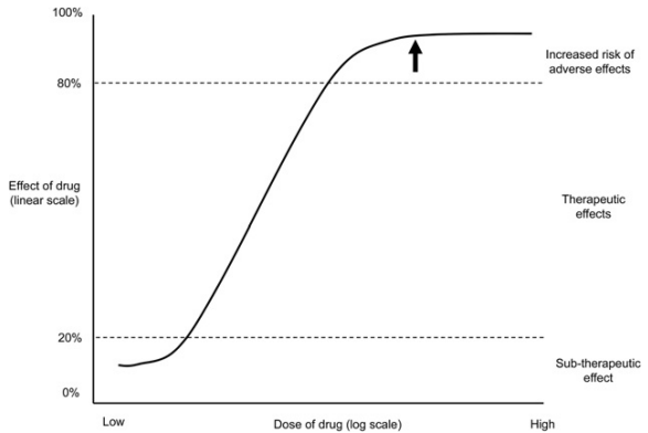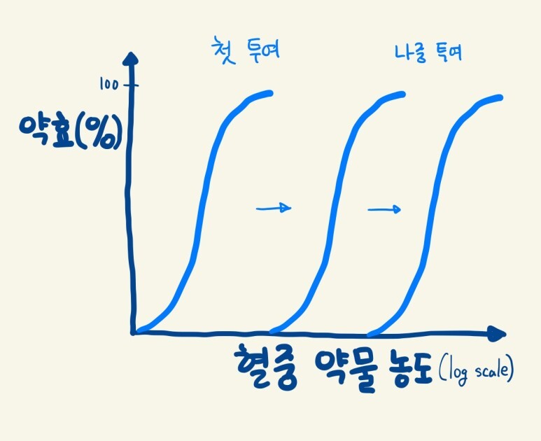 약물 작용 위치의 약물 농도와 치료 효과 사이의 관계를 나타낸다.