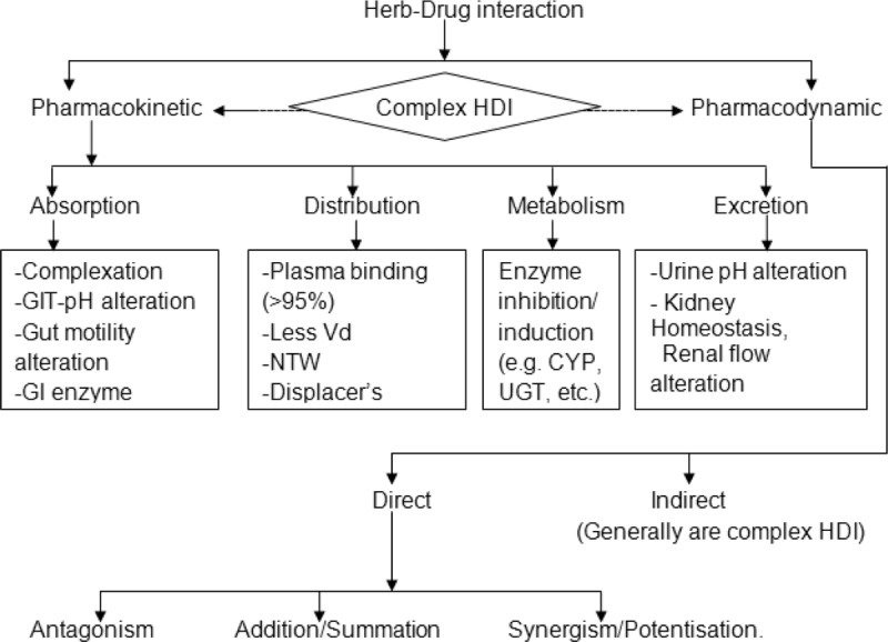 허브-약물 상호작용(HDI)은 복합 HDI(CHDI)를 유발할 수 있는 약물 및/또는 허브의 약동학(PK)-약력학(PD)에 직간접적인 영향을 미칩니다.