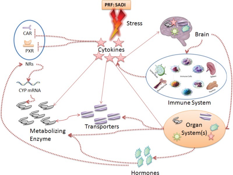 그러나 다른 유형의 상호 작용, 즉 약동학 및 약력학 상호 작용을 유발할 수 있는 다중/복합 HDI가 있을 수 있으며 cytokines–hormones–neurotransmitter–enzymes–transporter (CHNET) 변경과 관련된 상호 작용을 통해 매개될 수도 있고 아닐 수도 있습니다.