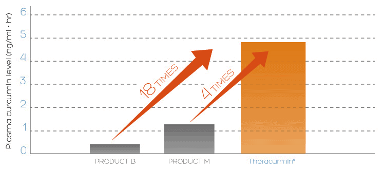 Theracurmin®은 이름 없는 경쟁 제품과 비교하여 혈장 커큐민 수준