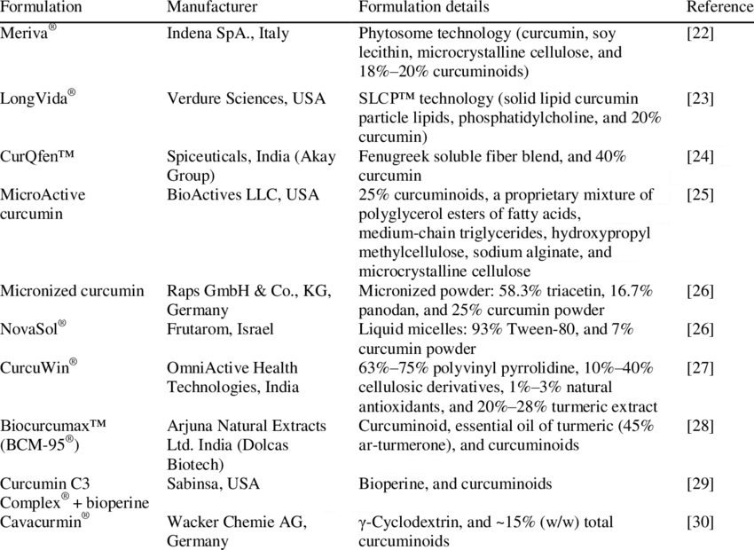 누군가 혈장 내 유리 커큐민, BCM-95, Meriva, Novasol 및 Theracurmin과 같은 다른 공식에 대해 더 많은 정보를 알고 있으면 정보를 제공하십시오.