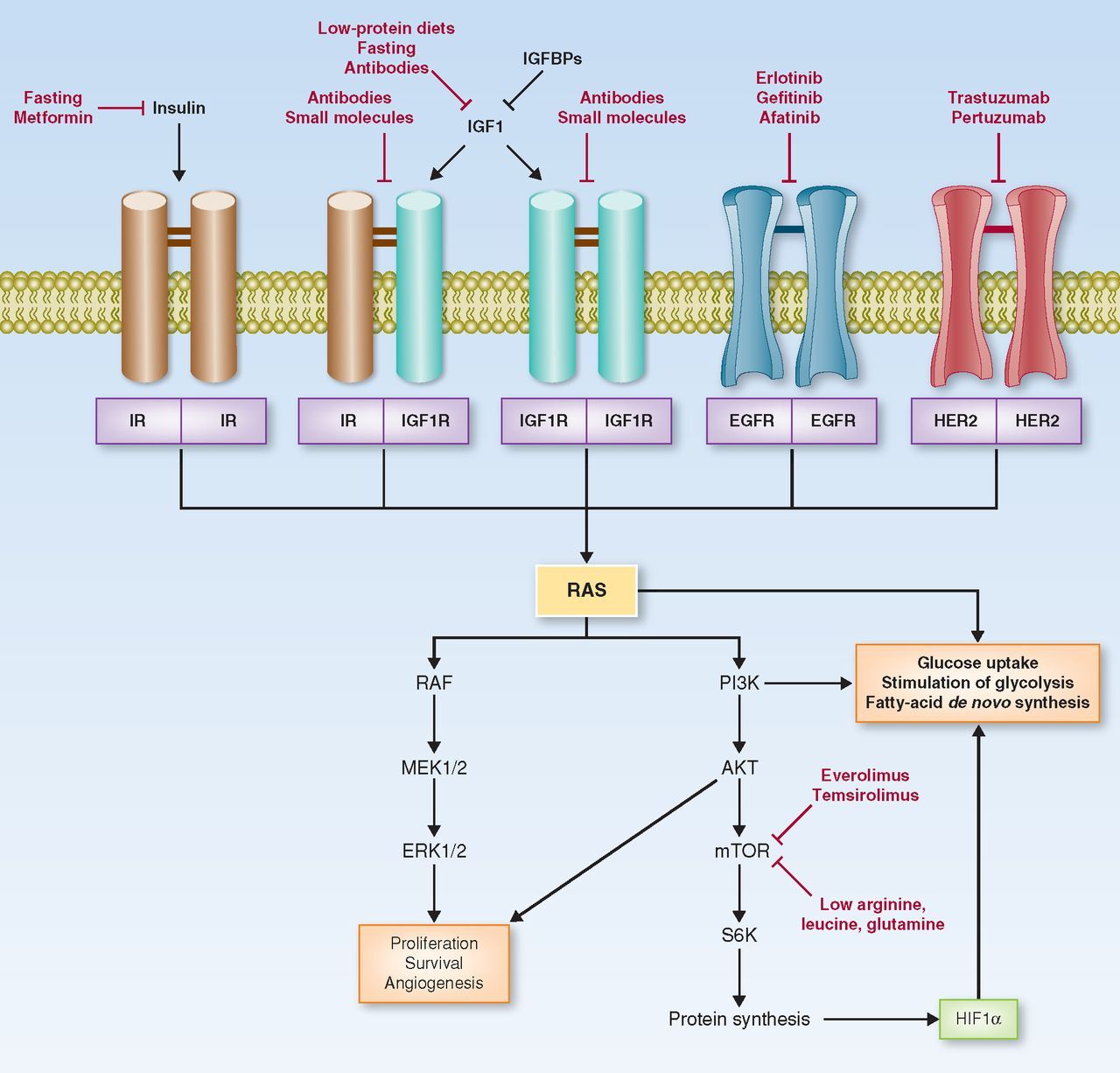 전자의 전략은 혈당 상태(고혈당 대 정상 혈당), 18 FDG-PET를 통해 감지된 포도당에 대한 종양 결합력 또는 분자 종양 프로필(예: RAS 또는 PI3K 활성화)을 기반으로 하는 환자 하위 그룹을 신중하게 선택해야만 혜택을 받을 가능성이 더 높습니다.