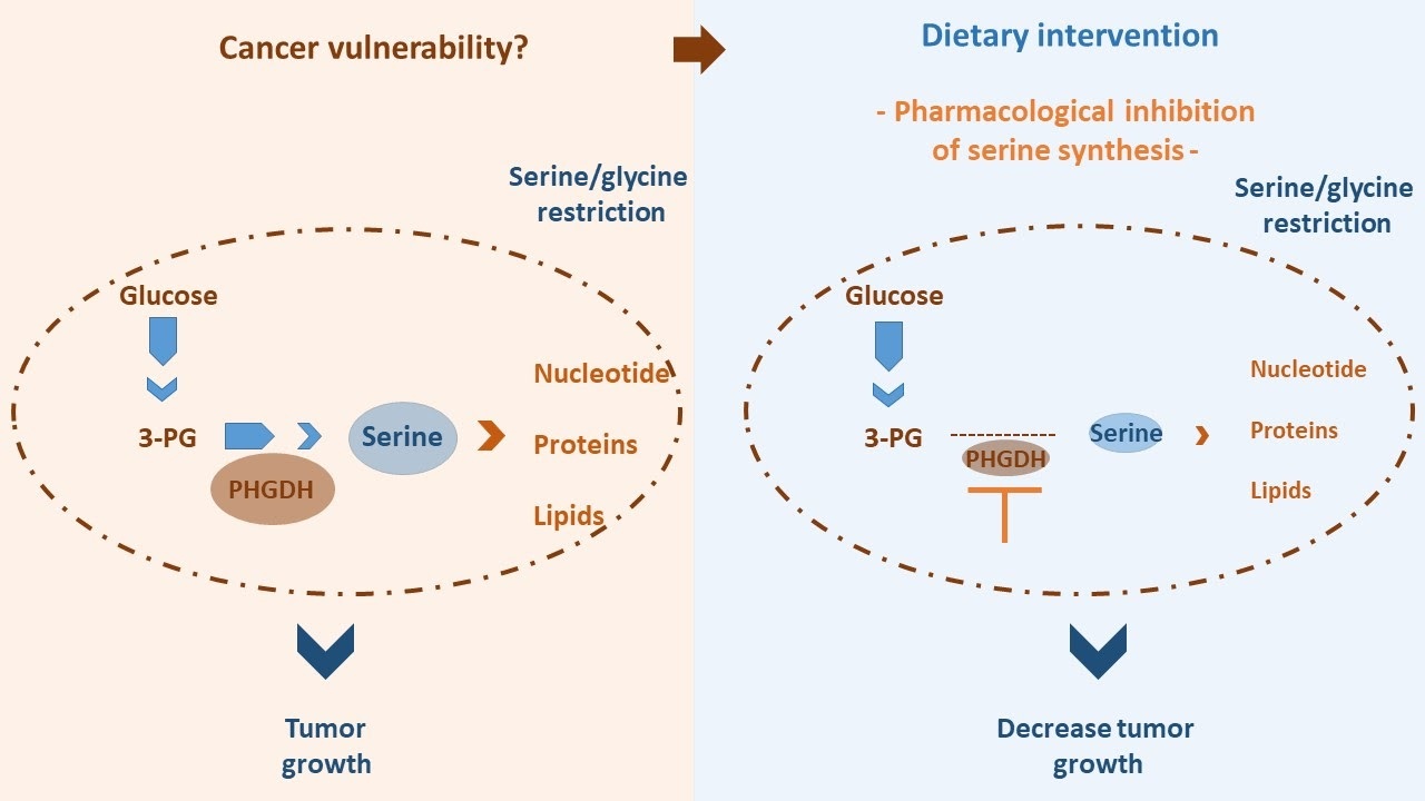 지역 환경에 의해 감소된 수준의 세린과 글리신 이 부과되는 일부 유형의 암에서 종양 세포는 종양 성장을 지원하기 위해 세린 합성 경로로 알려진 과정을 통해 세린을 생성 해야 합니다.