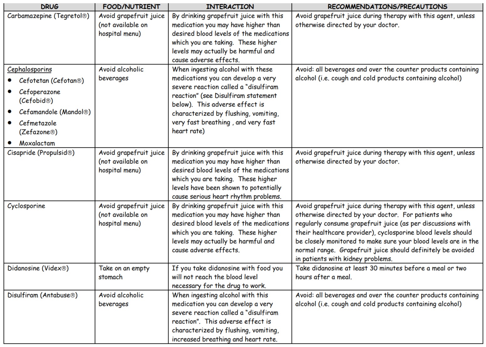DRUG-FOOD/DRUG-HERB INTERACTION GUIDE