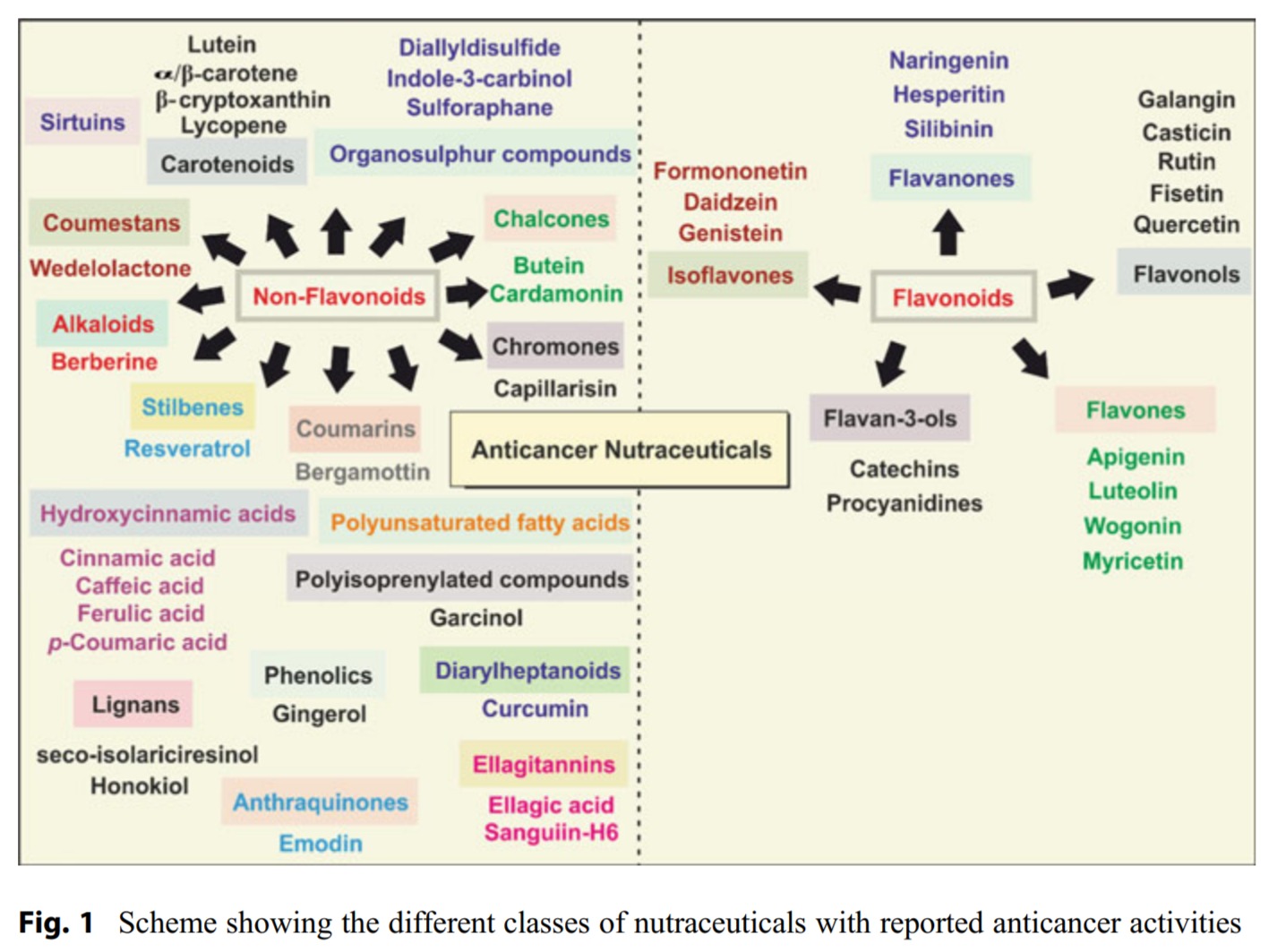 폴리페놀 화합물은 불포화 정도와 중심 pyran ring에서 플라본, 이소플라본, 플라바놀, 플라보놀 및 플라바논으로의 치환 패턴에 따라 분류될 수 있습니다